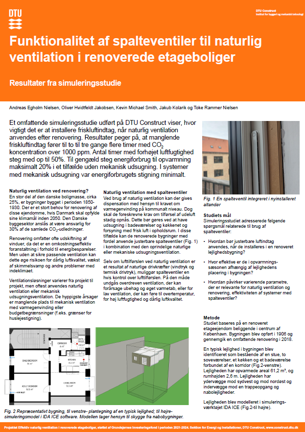 Funktionalitet af spalteventiler til naturlig ventilation i renoverede etageboliger