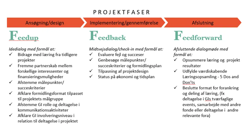 GI har en tæt dialog med ansøgere i den indledende projektansøgningsfase, og vil forstærke denne dialog fremover specielt med fokus på de kommunikative aktiviteter.